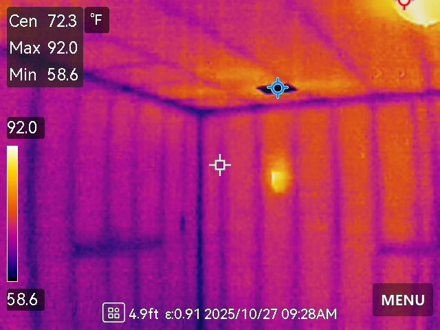 Thermal imaging can show any missing insulation in the walls with ease. Do you have a fire hazard lurking in your walls? A thermal camera can show evidence of resistance at switches and fixtures that would eventually lead to fire from faulty wiring. Ever notice how a toilet can be slightly loose? Thermal imaging can show whether or not that loose toilet has leaked water under your flooring in the bathroom.